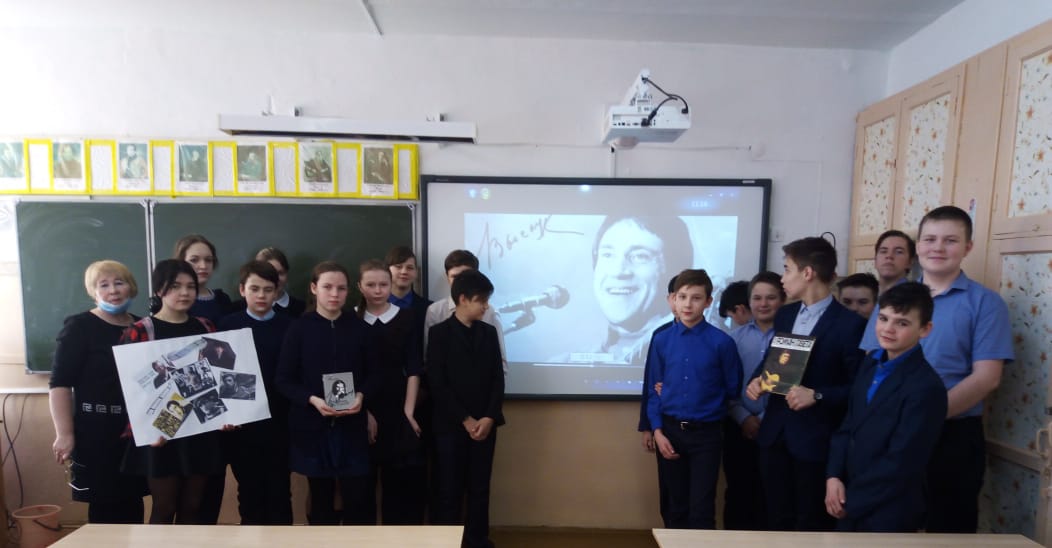 Совместно с сельской библиотекой в школе прошло мероприятие, посвященное памяти Владимира Высоцкого. Ребята читали стихи и слушали его песни.