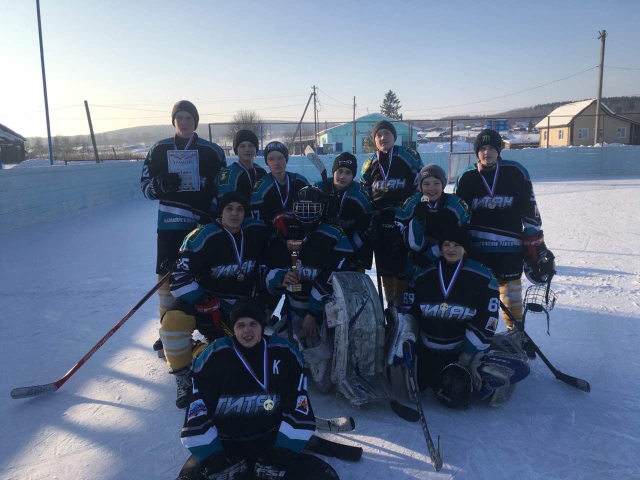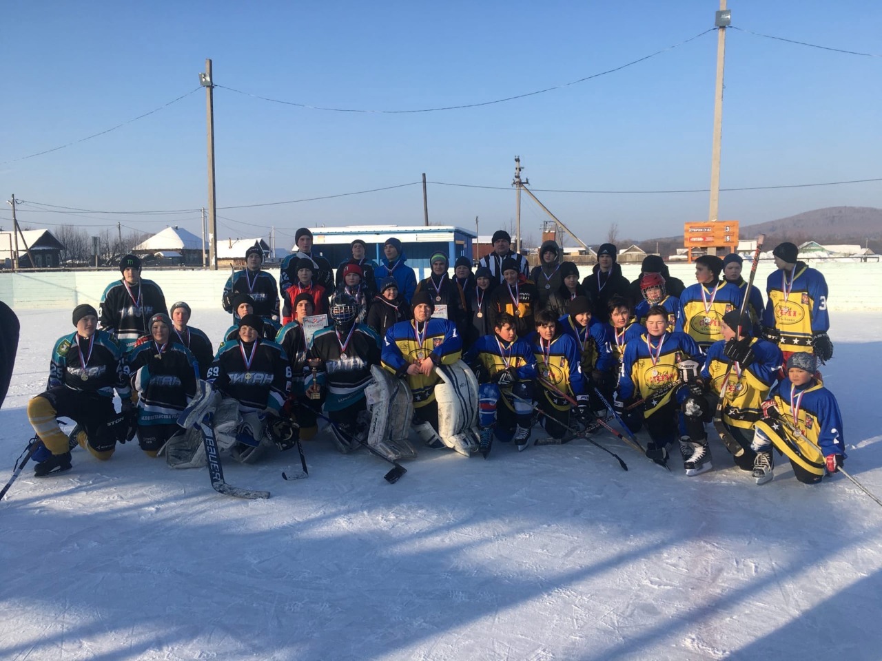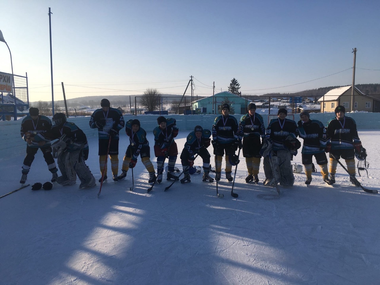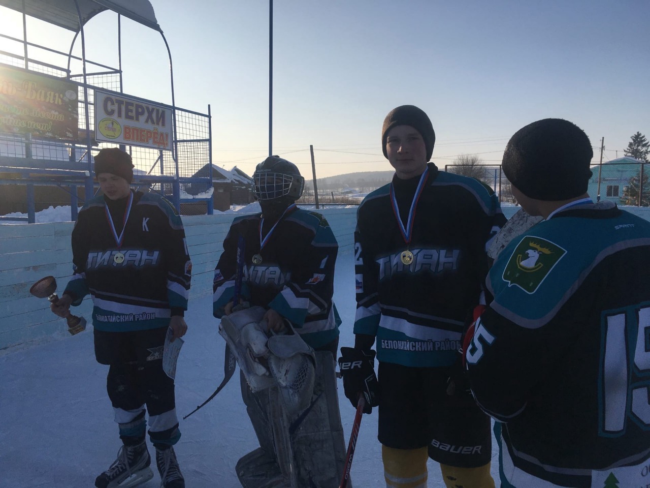 Рядом с юными хоккеистами были их наставники Лапшин Ярослав Юрьевич и Шперлинг Виктор Ворфоломеевич .Команда юных хоккеистов и их болельщики получили море положительных эмоций. Желаем команде новых побед и высоких результативных показателей в зимних видах спорта! Поздравляем с победой!