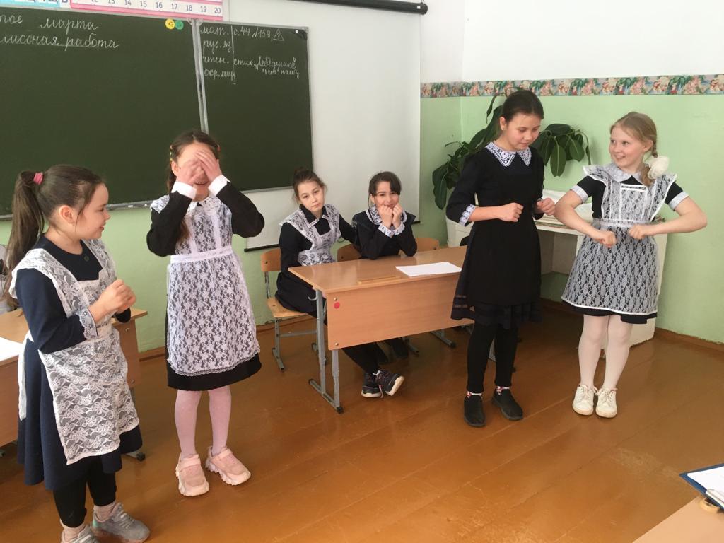 В 4 классе прошла конкурсная программа " А ну-ка, девочки". В игре соревновались 2 команды девочек. Показывали таланты ведения домашнего хозяйства, в жюри были мальчики, оценивали очарование, юмор, находчивость и хозяйственность конкурсанток. Игра закончилась со счетом 20/20 баллов