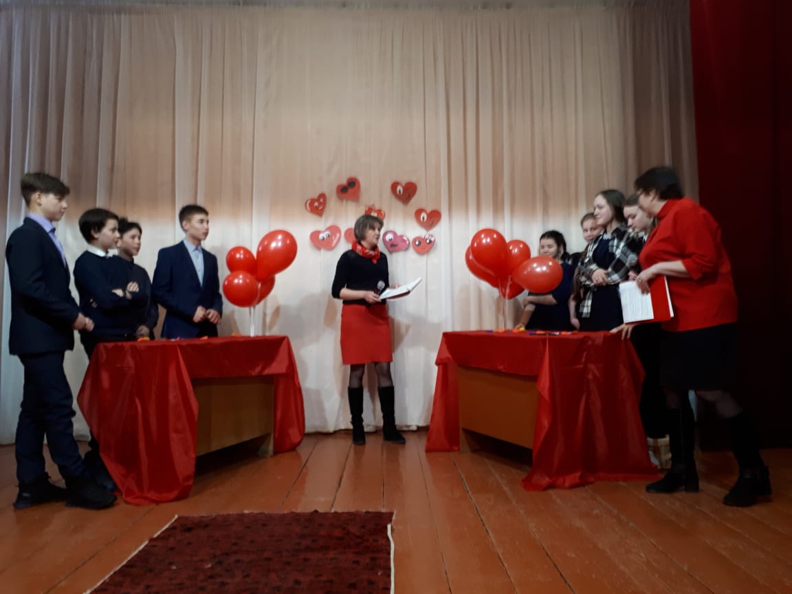 Накануне Международного женского дня, работниками культуры, Самойловой Людмилой Викторовной и Самойловой Юлией Рафиковной, проведена развлекательная программа «Любовь с первого взгляда» среди молодежи. В игре участвовало четыре пары из 8 класса. В начале ведущие в качестве разминки задавали конкурсантам различные вопросы, пытаясь поставить их в затруднительную ситуацию. Ребята же старались отвечать с юмором, креативно и весело. В следующих конкурсах юноши говорили своим девушкам комплементы, старались попасть стрелой Амура в «виртуальное» сердце своей дамы. Затем все вместе танцевали вальс, рисовали свой «Город любви» и собирали «сердечные» пазлы. Интересно прошли игры со зрителями. Одним словом, вечер прошел в весёлой дружественной обстановке. И вот ,она пара счастливчиков - Денис Мухамедьянов и Гузель Галиаскарова.