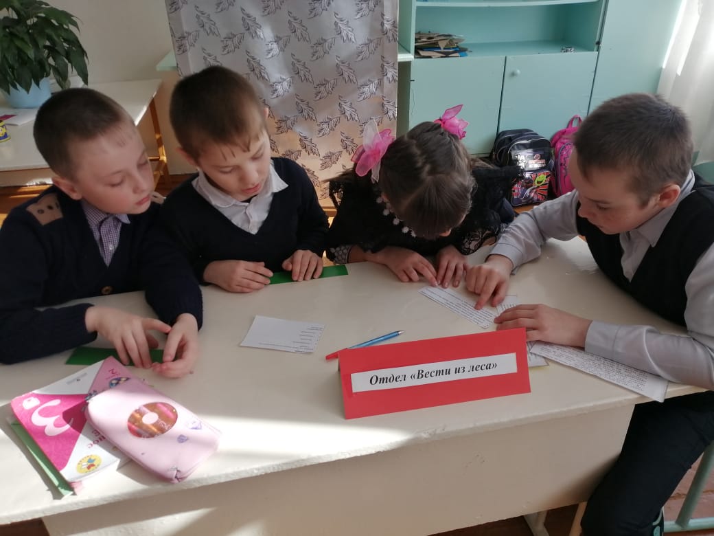 И сегодня ,14 марта, в 3 классе нашей школы прошёл урок- конференция" Земля- наш дом родной", где каждая группа представляла отдел " Лесной газеты". Закончили конференцию словами М. М. Пришвина "Для рыбы нужна чистая вода – будем охранять наши водоёмы. В лесах, степях, горах разные ценные животные – будем охранять наши леса, степи, горы. Рыбе – вода, птице - воздух, зверю – лес, степь, горы. А человеку нужна Родина. И охранять природу-значит охранять Родину".