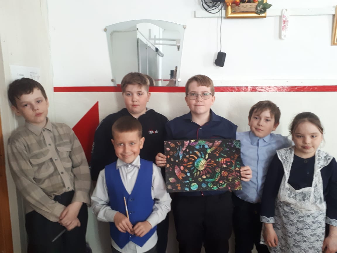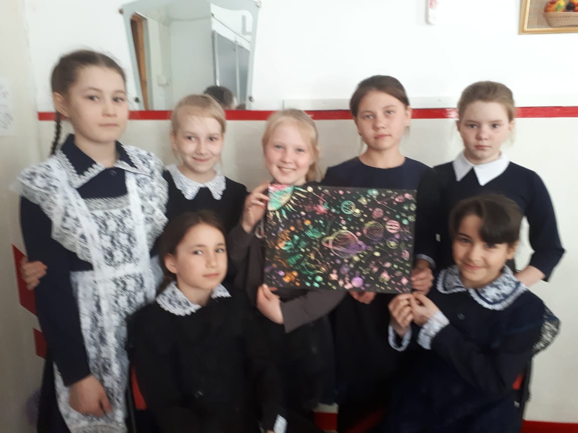 12.04 в 4 классе был проведен мастер-класс по изобразительному искусству " Космические фантазии в технике граттаж". Удивительная техника , интересная и завораживающая, привлекает внимание детей, развивает творческие способности, прививает трудолюбие и аккуратность. Использовали эту технику для рисования Космоса. Сколько эмоций и фантазий подарило это искусство!