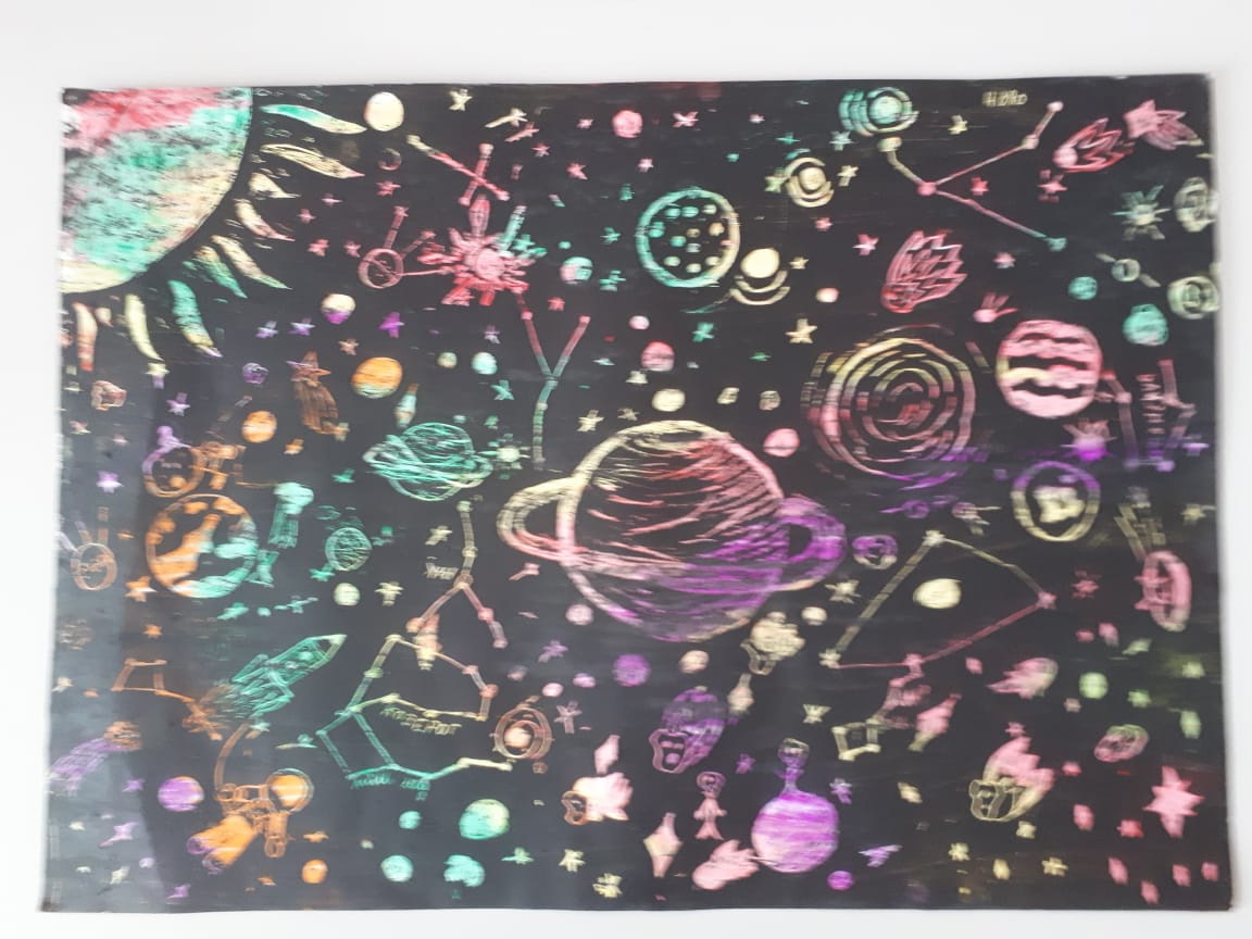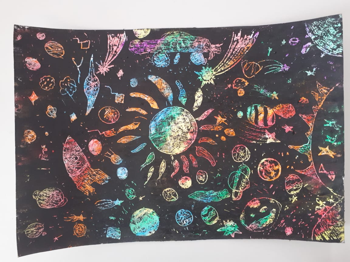 Мастер-класс по ИЗО "Космические фантазии в технике граттаж"