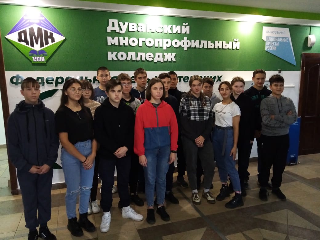 Выбор будущей профессии - ответственный шаг в жизни каждого человека. Для минимизации ошибки при выборе будущей профессии, служит программа по ранней профориентации учащихся в рамках проекта "Билет в будущее". В рамках этого проекта учащиеся школы посетили Дуванский многопрофильный колледж, где приняли участие в профпробах. Ребята попробовали себя в роли механиков сельскохозяйственного производства и ветеринаров. Также была организована экскурсия по колледжу и общежитию, где ребята ознакомились с условиями учёбы и быта студентов. Впечатлений и эмоций было через край, а кто-то и всерьёз задумался о будущем выборе.