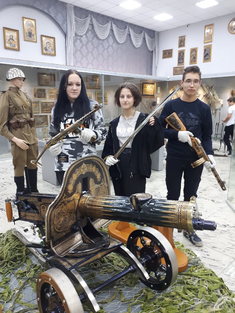 В последний день каникул учащиеся МБОУ СОШ с. Карлыханово совершили интересную и познавательную экскурсию в г. Златоуст. Небольшой городок средь Уральских гор...Но этому городу есть чем гордиться! Златоустовская оружейная фабрика является одной из многочисленных достопримечательностей. Музей состоит из двух небольших залов, но сколько там хранится истории...В годы войны она была единственной фабрикой, которая вооружала армию холодным оружием, участвовала в производстве и стрелкового оружия. Огромную роль в историю фабрики внес Иван Бушуев - художник-гравер, открывший технику золочения на стали. Нам рассказали, каким образом создается гравюрный рисунок. Этот процесс золочения был с использованием ртути, поэтому прожил Иван Бушуев всего 30 с небольшим лет. Но даже за этот короткий срок он внес огромный вклад в нашу историю. А сколько здесь экспонатов..... С некоторыми музейными экспонатами можно было сфотографироваться и взять в руки. Мы конечно же не удержались. Каждому хотелось прикоснуться к истории...