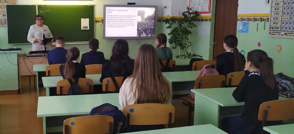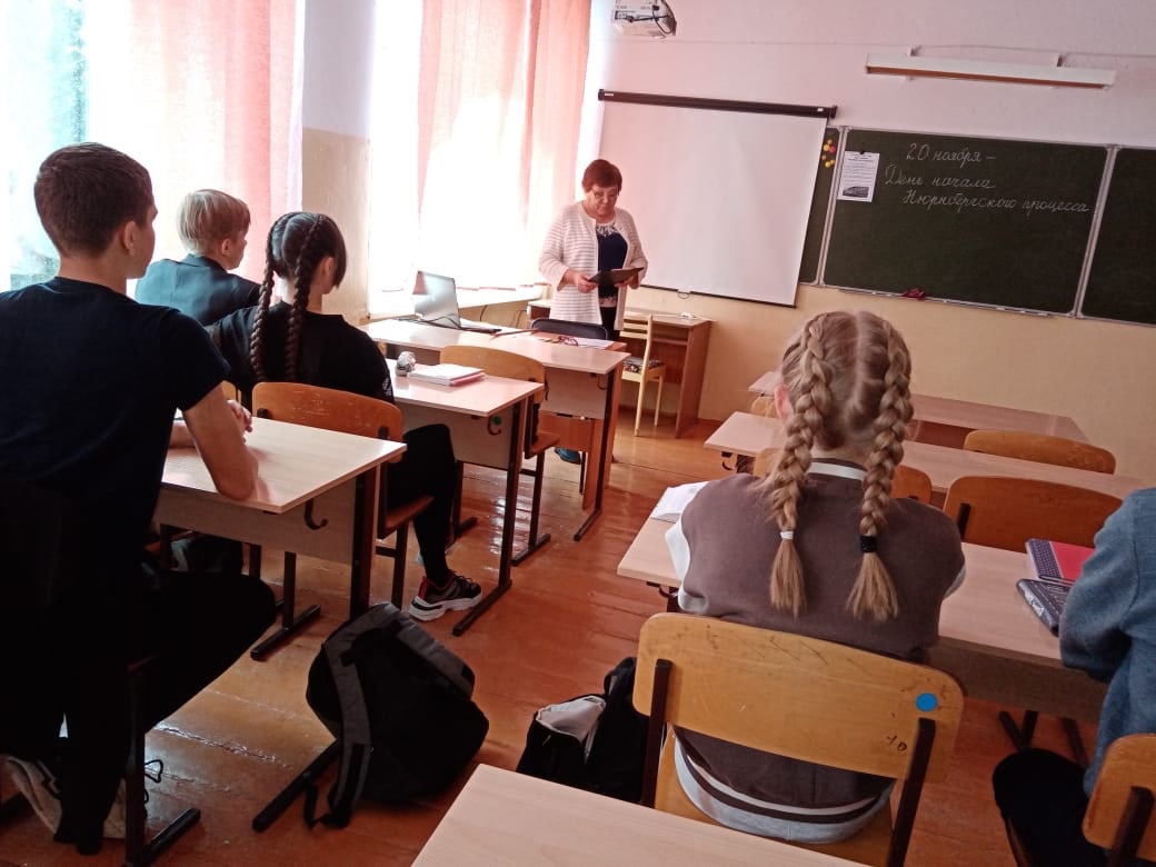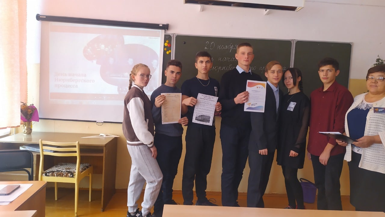 15 ноября в МБОУ СОШ с.Карлыханово в 7 и 11 классах был организован просмотр видеоурока «День начала Нюрнбергского процесса» с последующим обсуждением. Так же ребята участвовали в сборе 7 пазлов о Нюрнбергском процессе, которые были размещены на стенах коридора и в кабинетах в школе в виде постеров с QR-кодами, получили по QR-кодам информацию и отразили на рабочем листе ответы.