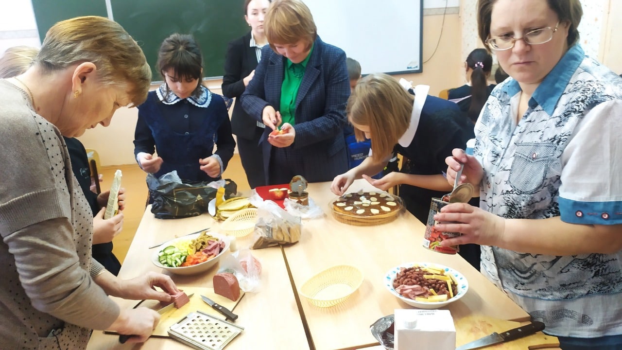 В 5 и 8 классах прошел мастер-класс «Торт без выпечки». В школу пригласили мам, бабушек, которые со своими детьми участвовали в мастер-классе по изготовлению лакомств (торты, салаты). Завершились мастер-классы совместным чаепитием.
