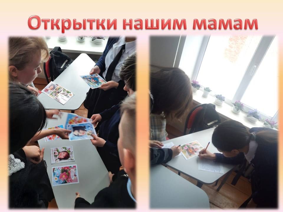 Учащиеся начальных классов со своими учителями создавали открытки для своих мам. В коридоре школы устроили выставку рисунков детей «Мама, мамочка, мамуля…», приуроченную к праздничному концерту, на который пригласили мам.