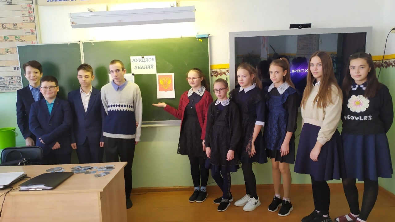 Н.Н. Махиянова провела в 7 классе аукцион знаний «Мой герб». Ребята активно участвовали в игре, старались отвечать на вопросы подробно. Самые активные участники были награждены грамотами.