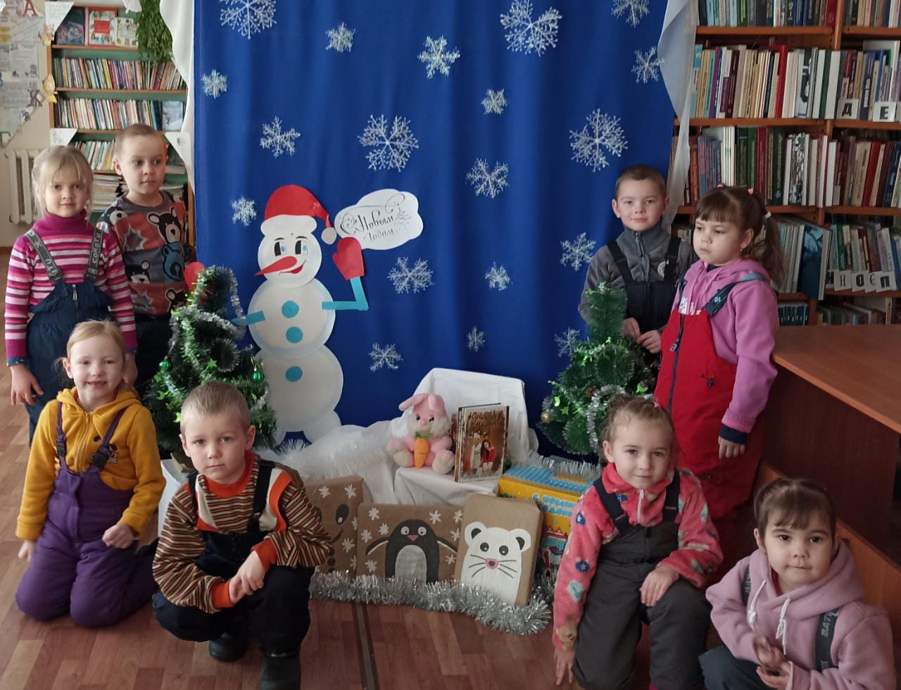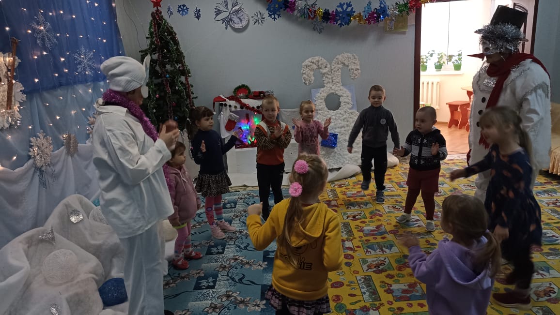 На день рождения спели имениннику "Каравай". Вместе со Снеговиком соревновались в играх, пели песни, танцевали.