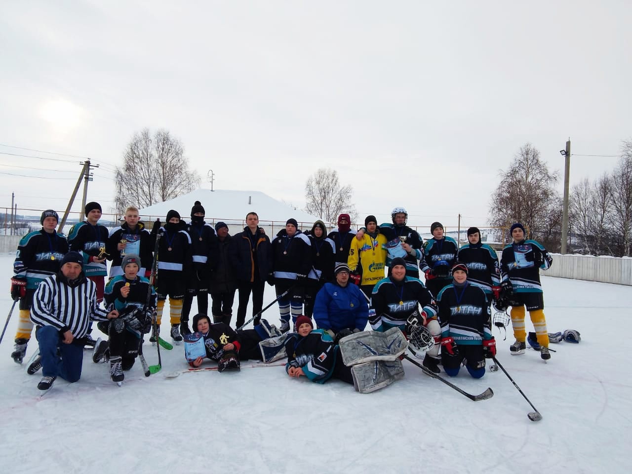В нашем селе есть хоккейная команда "Титан", и на смену взрослым хоккеистам растет достойная замена! Дети от 8 до 12 лет. Тренер команды Шперлинг В.В., судья матча Коротаев Ю. А.