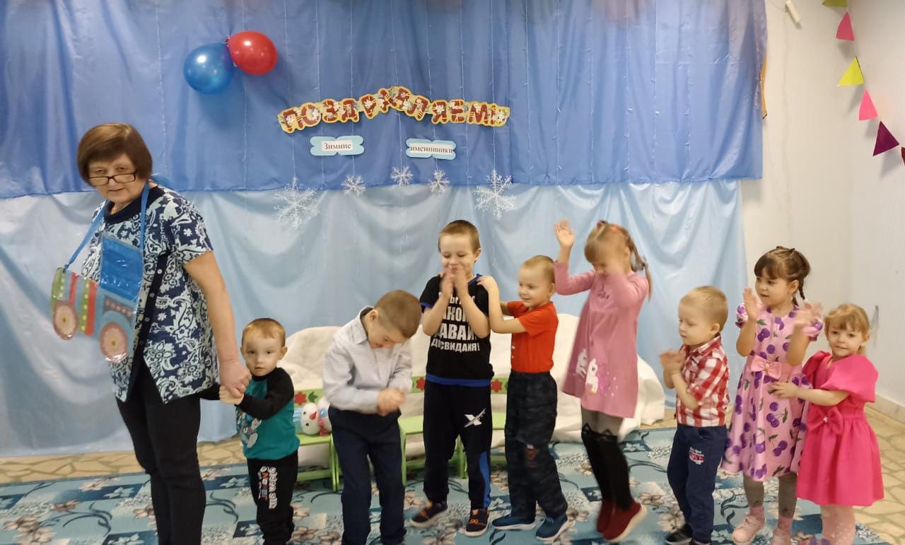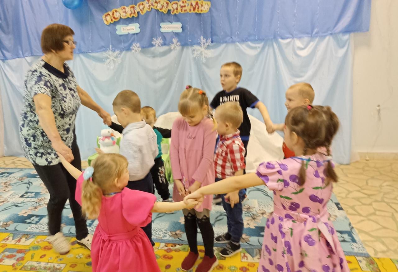В последний день зимы прошёл досуг "День зимних именинников". Для воспитанников, рождённых зимой, было проведено яркое, весёлое представление. На празднике развлекал детей весёлый Снеговик. Он играл с детьми, шутил.