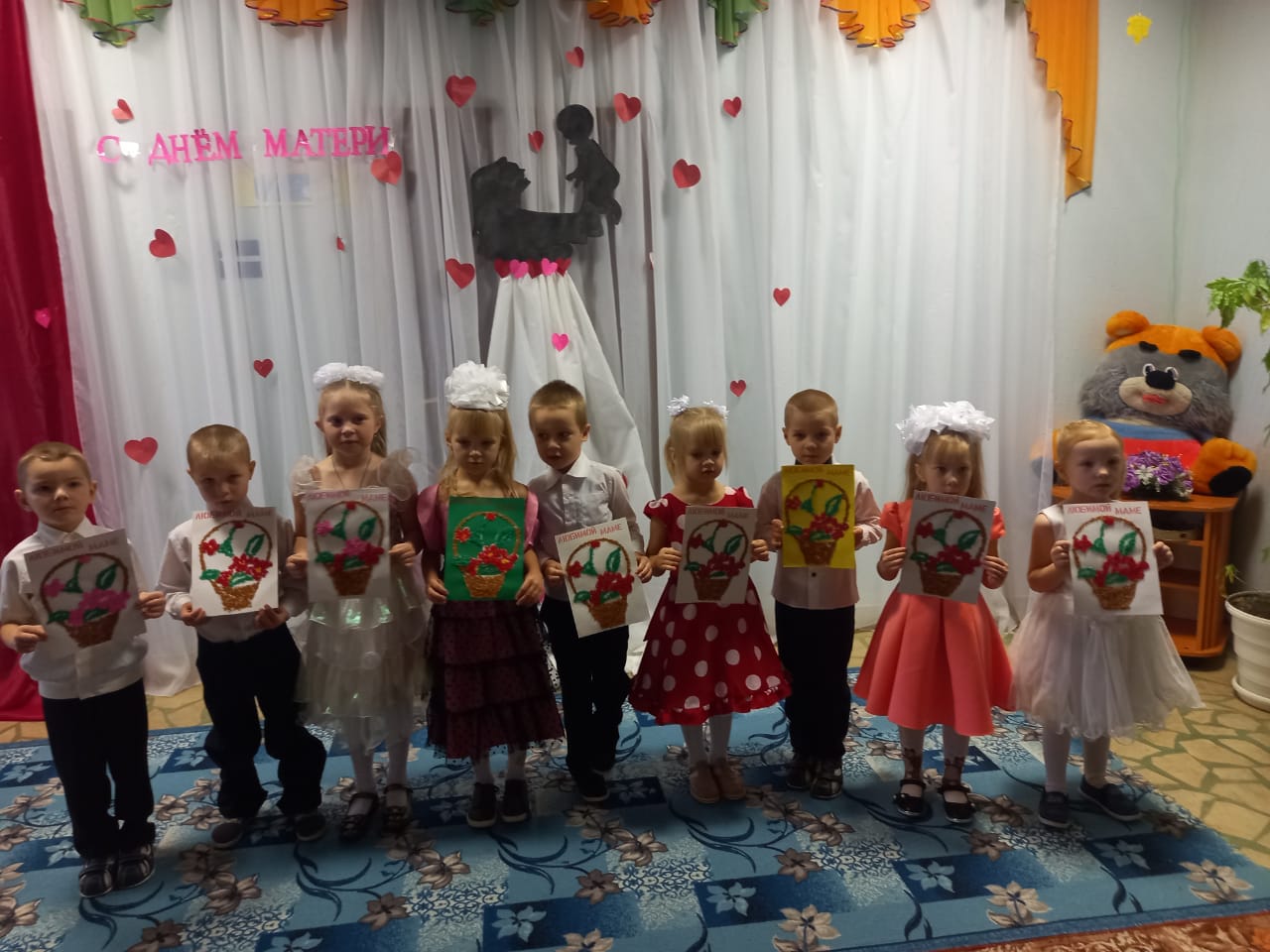 В филиале МБОУ СОШ с. Карлыханово д/с "Рябинушка" с. Ногуши провели утренник, посвященный Дню матери. Были организованы фотовыставки "Я с мамой" и "Мама-золотые руки". Дети приготовили подарки своими руками для любимых мамочек.