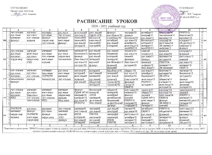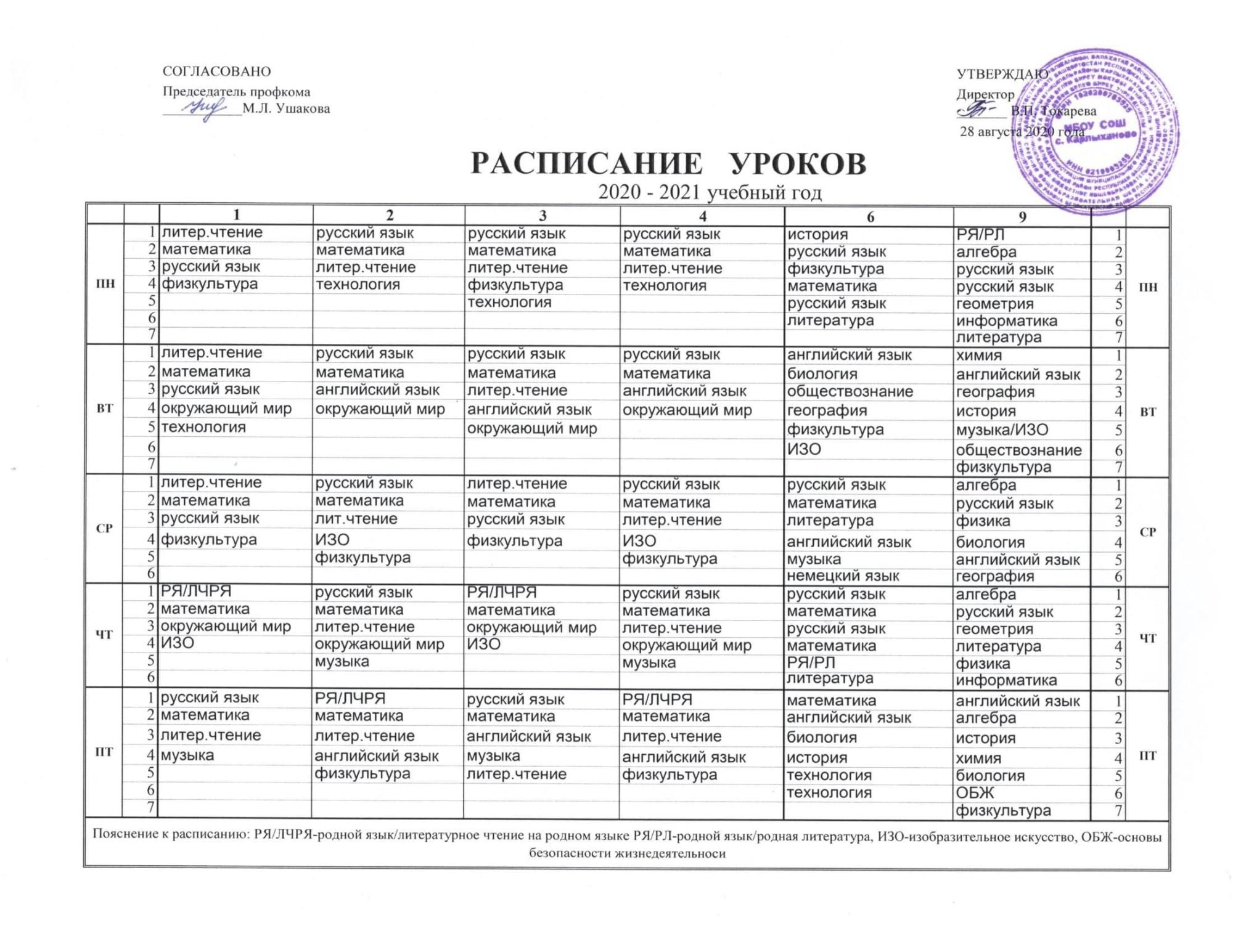 Расписание уроков МБОУ СОШ с. Карлыханово на 2020-2021 учебный год