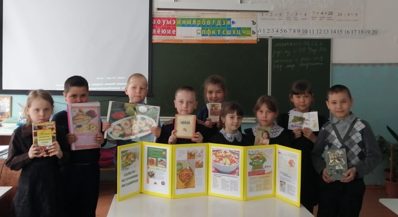 С 19 по 23 апреля прошла Неделя Здорового питания. Учащиеся школы оформили стенд "Все о правильном питании", в библиотеке организованна выставка "Салаты — источники витаминов", прошли классные часы "Правильное питание — залог здоровья", "В здоровой семье — здоровое питание".