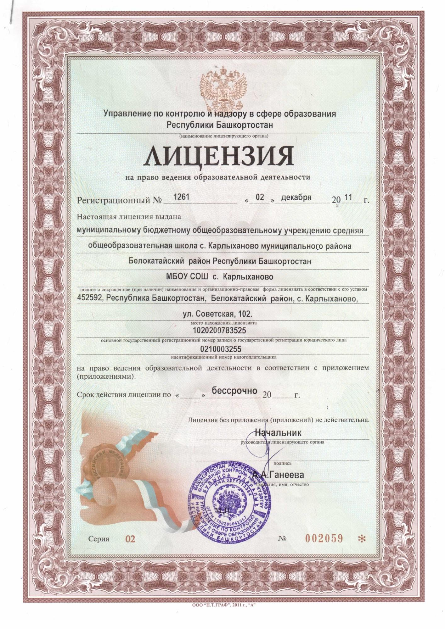 Информация о лицензии на осуществление образовательной деятельности